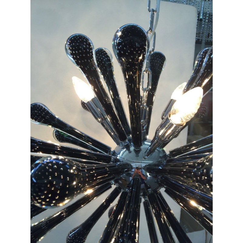 Contemporary SPUTNIK chandelier with black “DROPS ” with bubbles inside