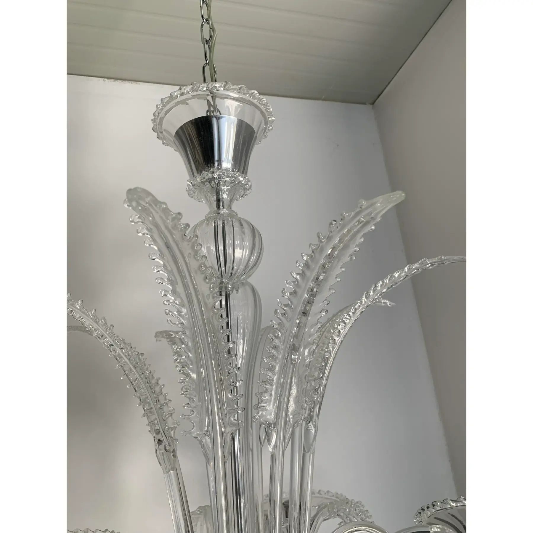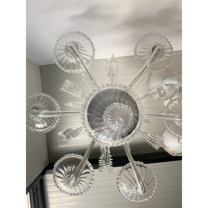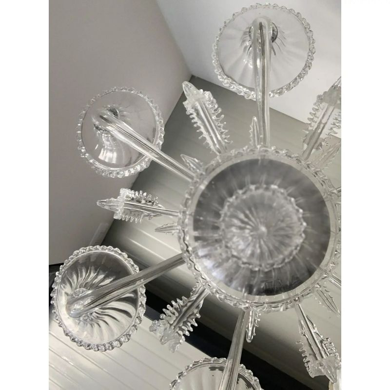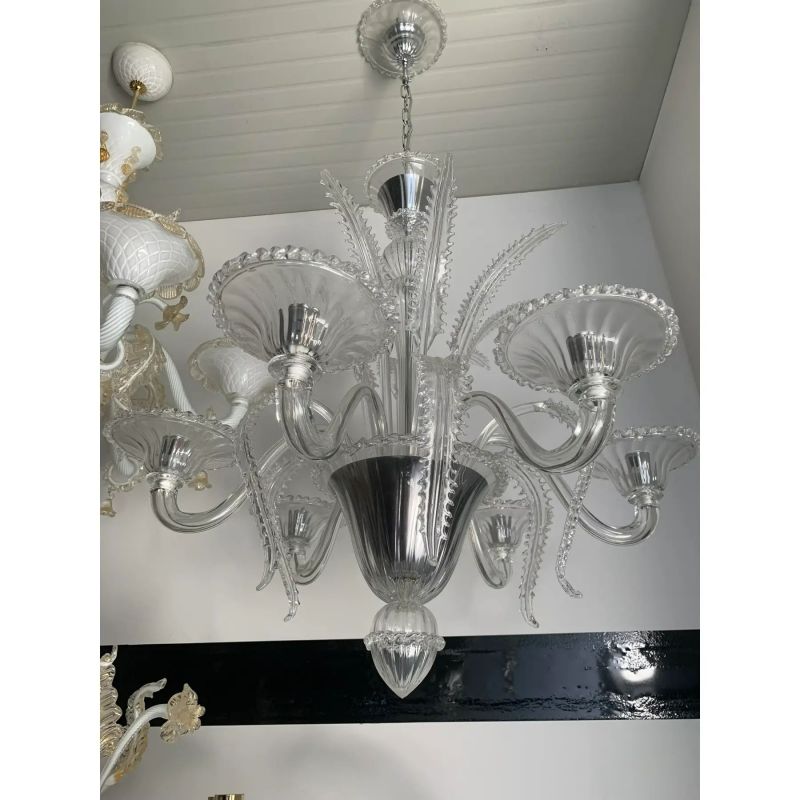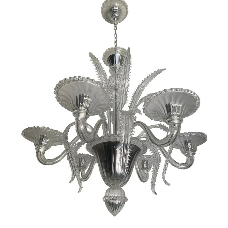 Transparent Murano-Style Venetian Glass Chandelier Featuring Fern (“Felci”) Leaves
