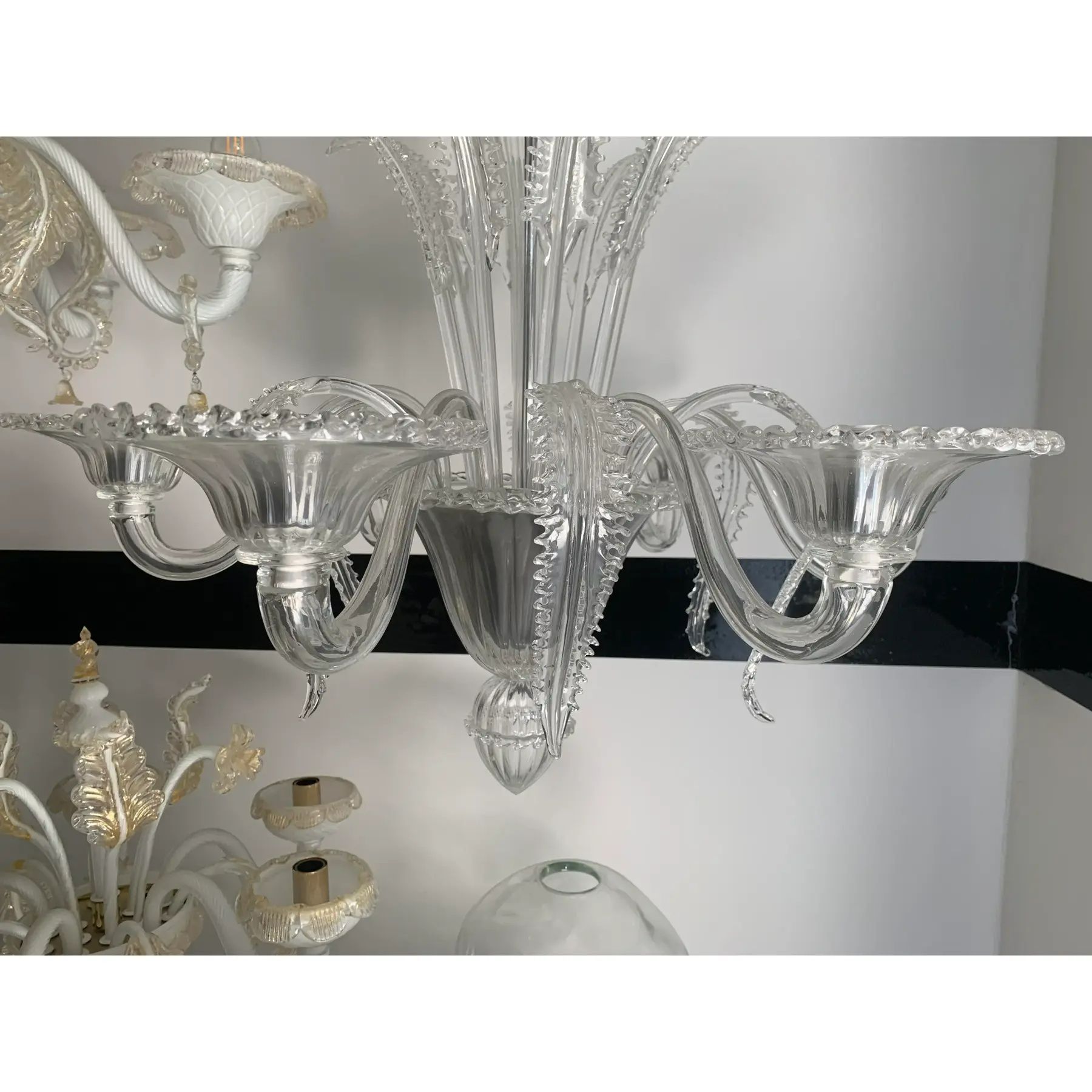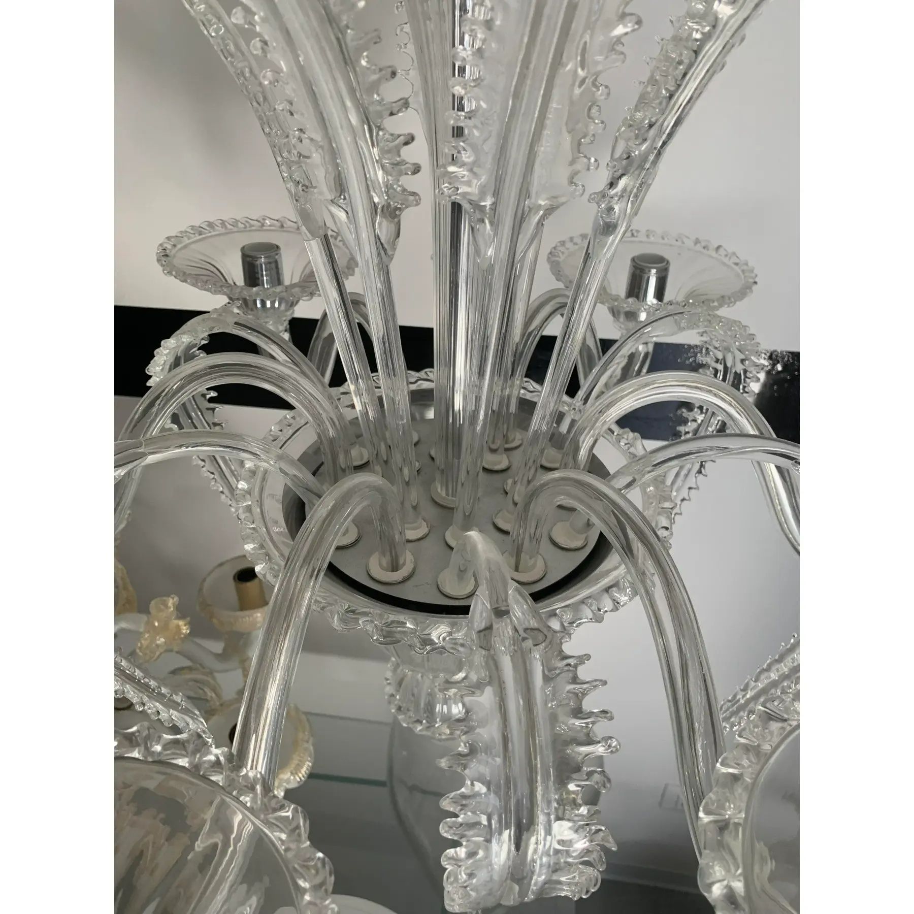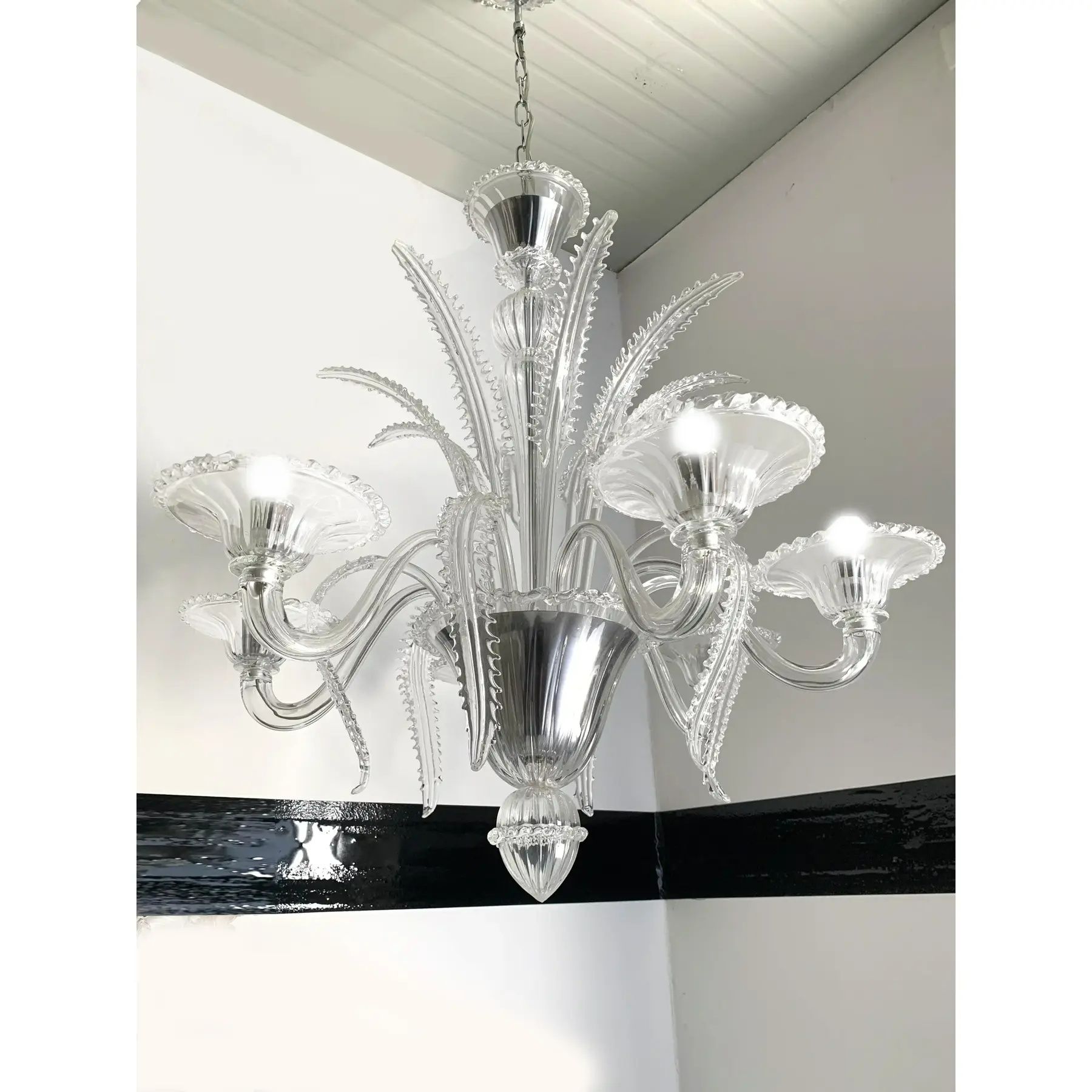 Transparent Murano-Style Venetian Glass Chandelier Featuring Fern (“Felci”) Leaves