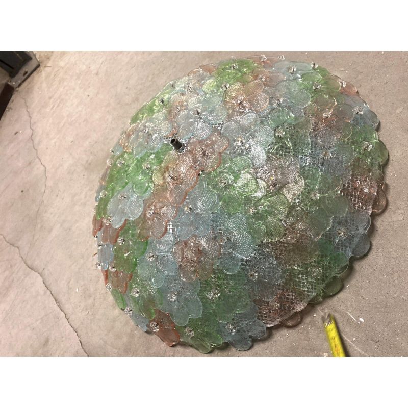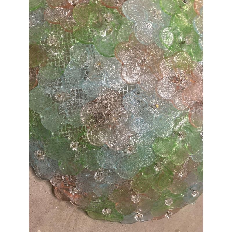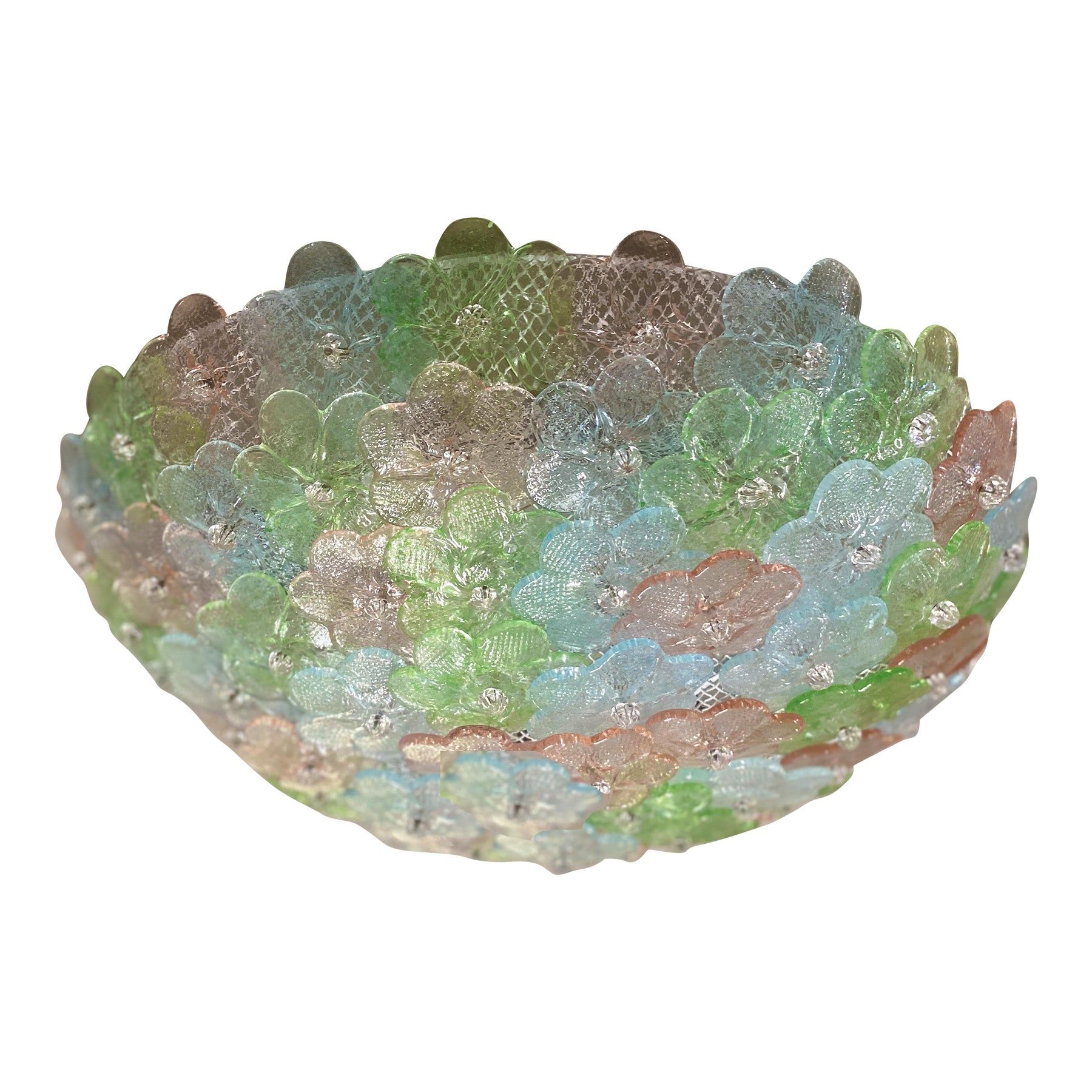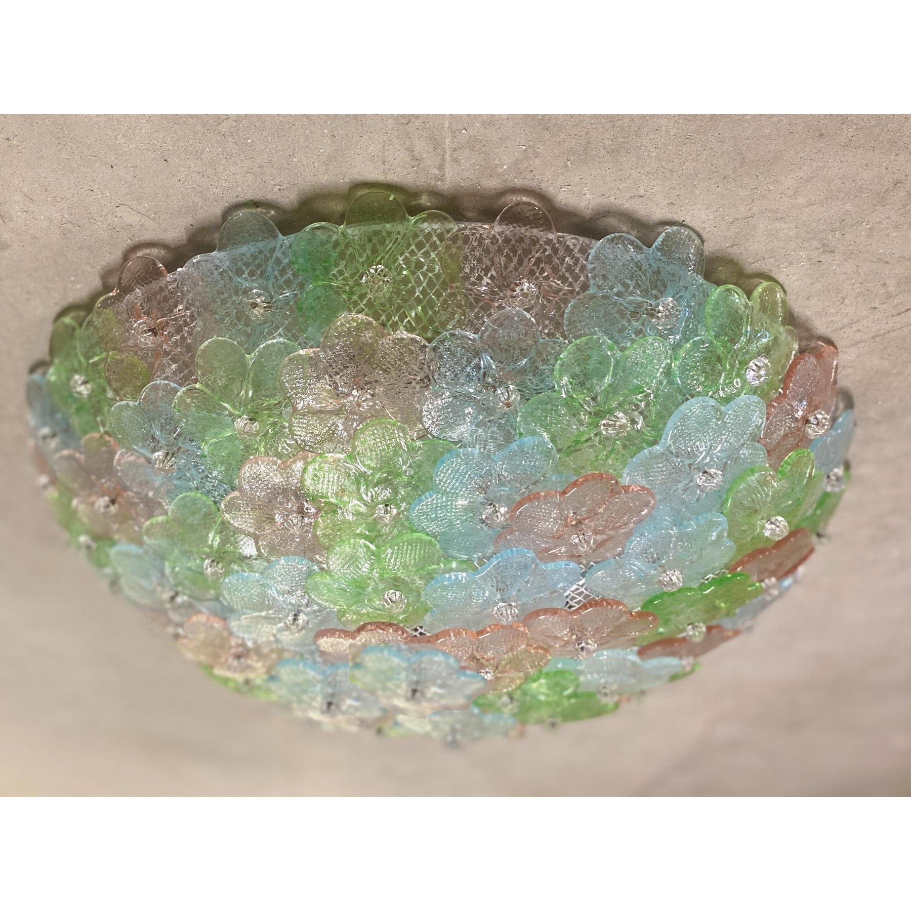 Venetian Green, Pink, and Light-Blue Flowers Murano Glass Flush Mount