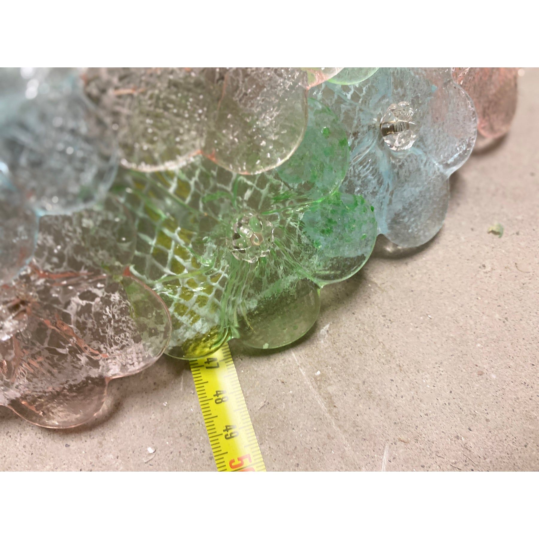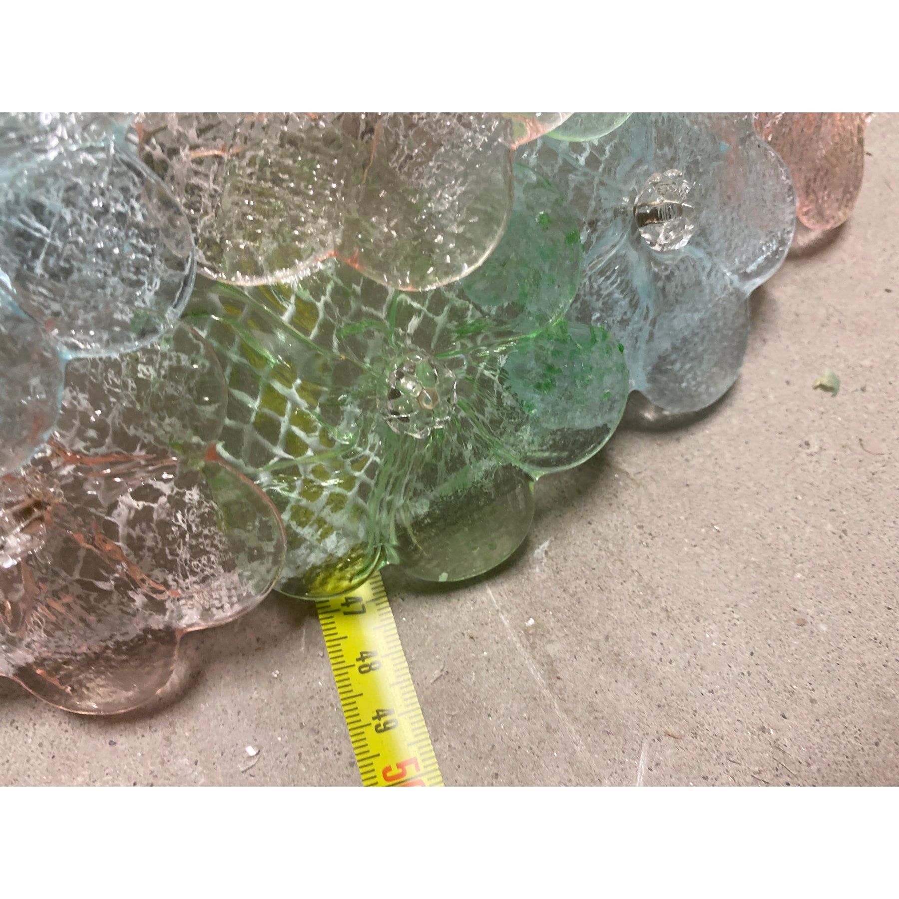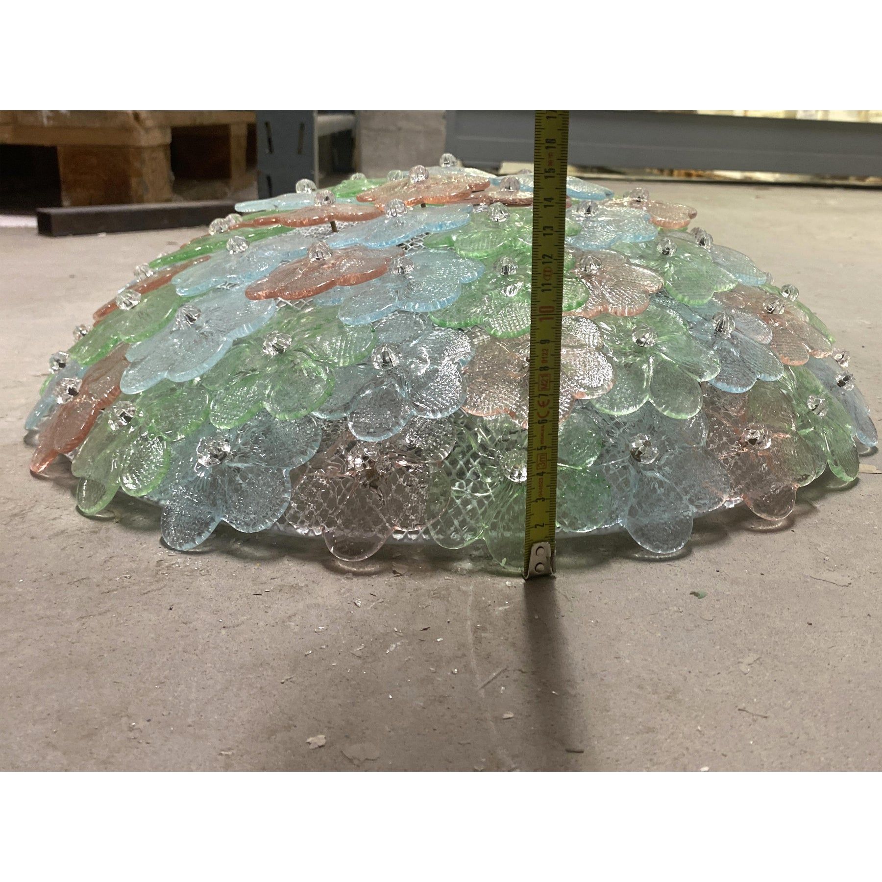 Venetian Green, Pink, and Light-Blue Flowers Murano Glass Flush Mount
