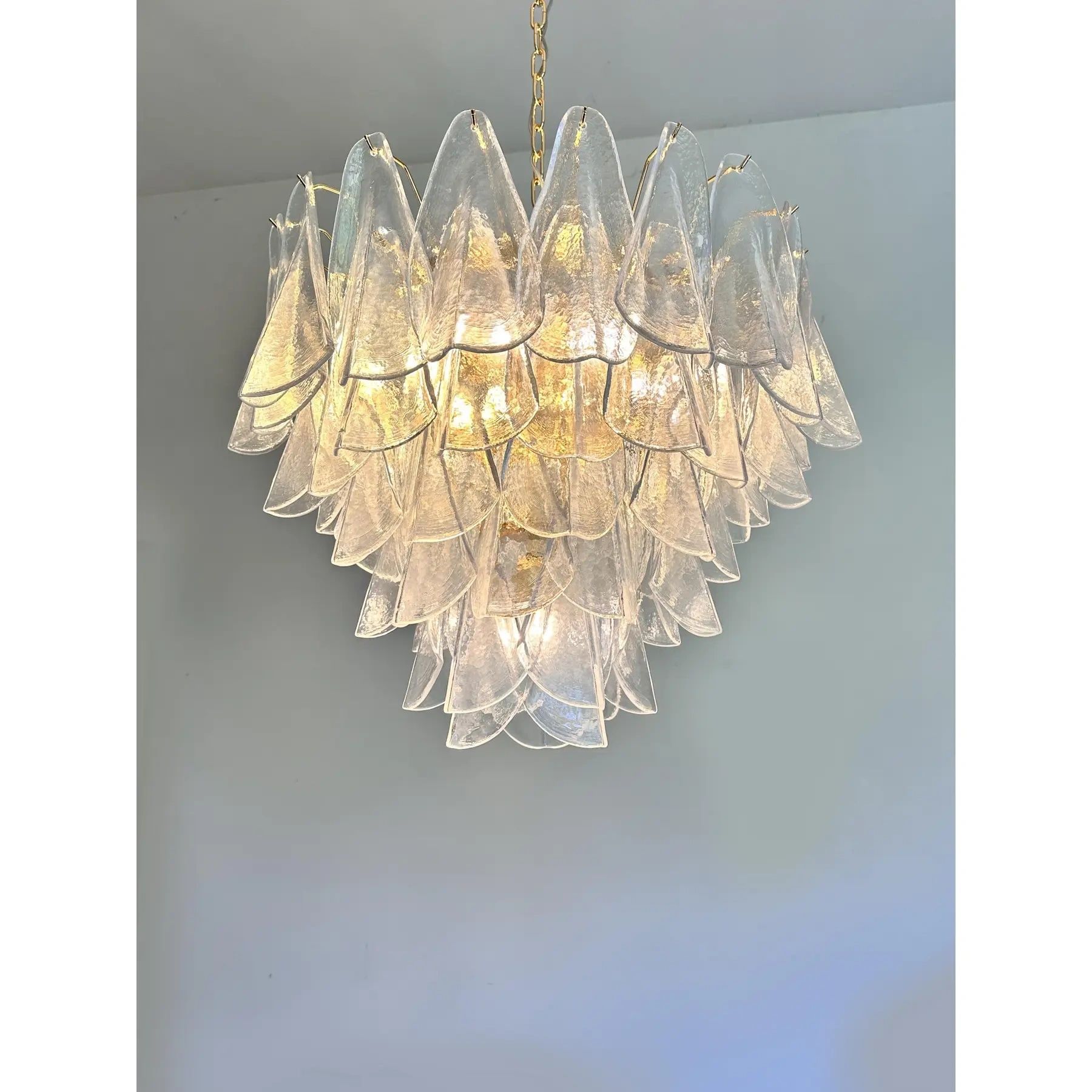 Venetian Transparent “Rondini” Murano Glass Gold Chandelier