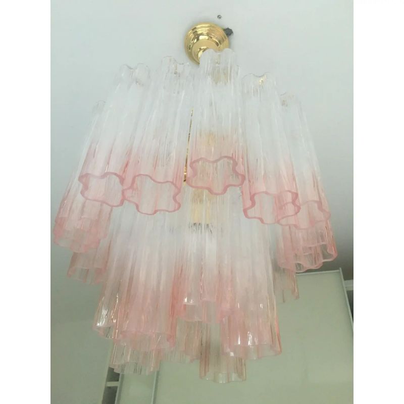 Chandelier Murano Glass Tronchi Like Venini Style in Pink Color