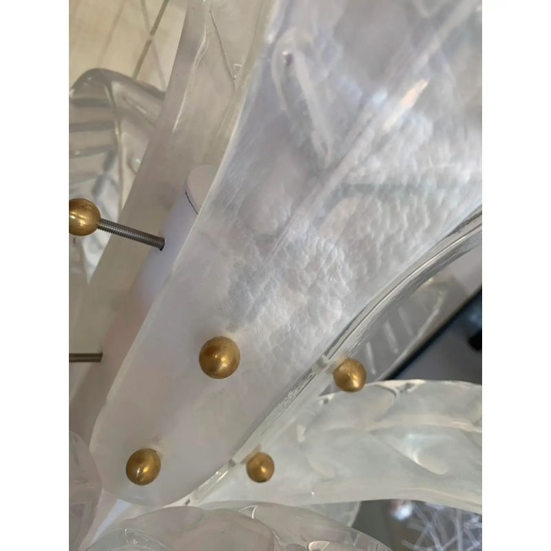 Mid-Century Modern Palm floor lamp in Murano glass. Rare opalino colour very elegant and luxurious. Metal frame in white and gold plated. Vintage 1970s style. Extravagant Murano glass floor lamp. Ship from Italy not assembled, made in Murano glass, Murano attributed. Very High Italian craftsmanship. It may show slight- moderate traces of use on the base.